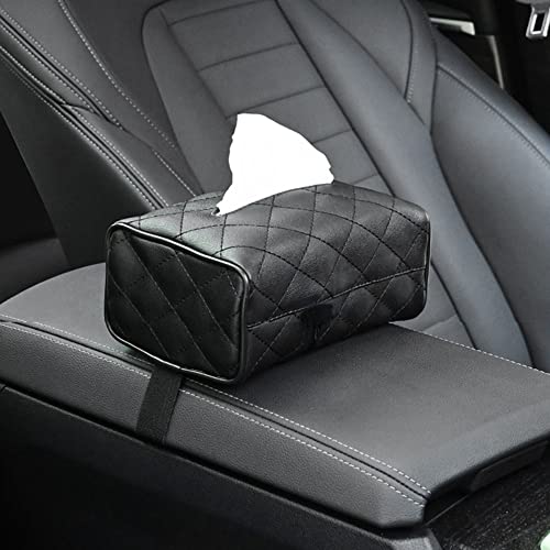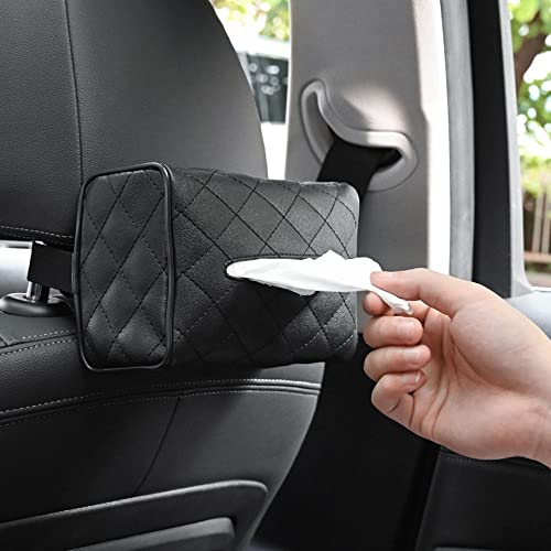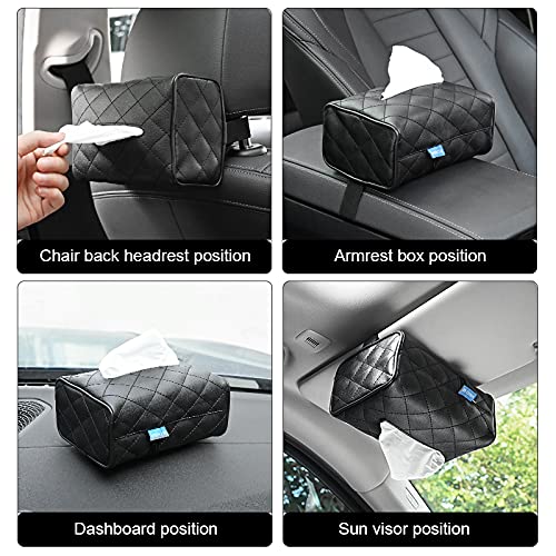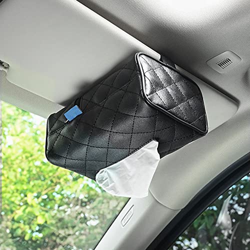 TDOO - حامل مناديل للسيارة مع غطاء لحافظة المناديل مصنوع من الجلد لتثبيته على واقي الشمس في السيارة مع شنطة للمناديل الورقية ومشبك لتعليقه على مسند الرأس بالمقعد الخلفي من تودو، لون أسود (Black-P)