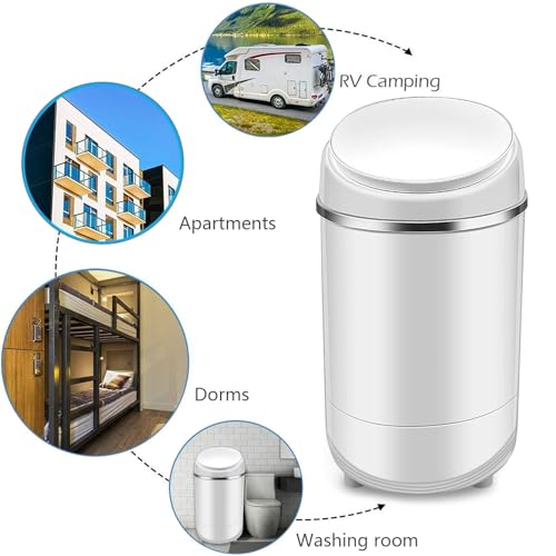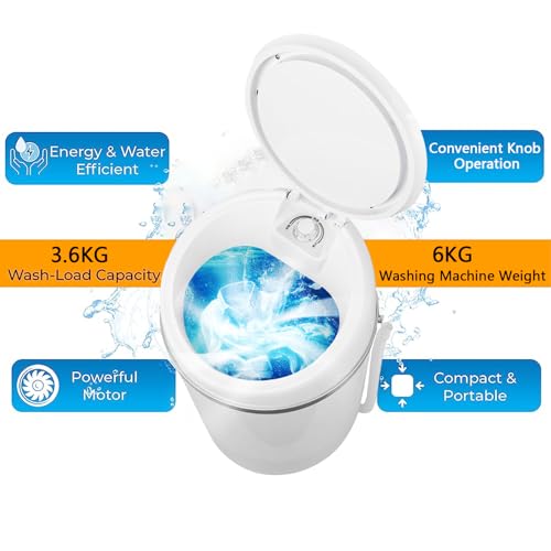 - تصميم صغير الحجم وسهل الحمل: يبلغ وزن الغسالة المحمولة حوالي 6.5 كجم، مما يسهل على البالغين نقلها؛ وهي مثالية للشقق ومساكن الطلاب والمركبات الترفيهية، وأي مكان لا تتوفر فيه مساحة كبيرة.