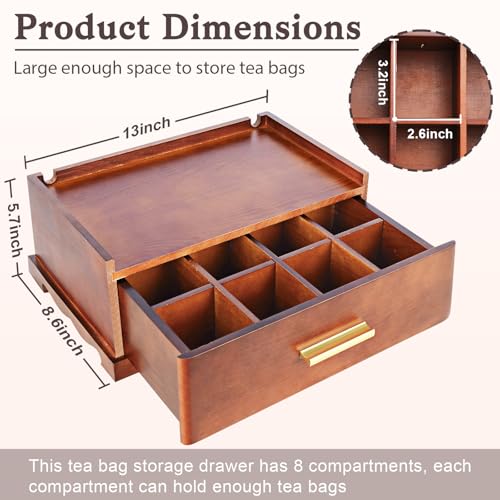 - منظم أكياس الشاي: سوف تحصل على منظم خشبي لمحطة الشاي، تحتوي منظمات الشاي والتخزين هذه على مقابض ذهبية جميلة على الدرج، مع حبيبات خشبية جميلة ومظهر جميل بشكل عام، مما يضمن أنه سيعزز ديكور منزلك