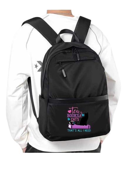 Generic - TEA BOOKS & CATS THAT'S ALL I NEED حقيبة ظهر سوداء