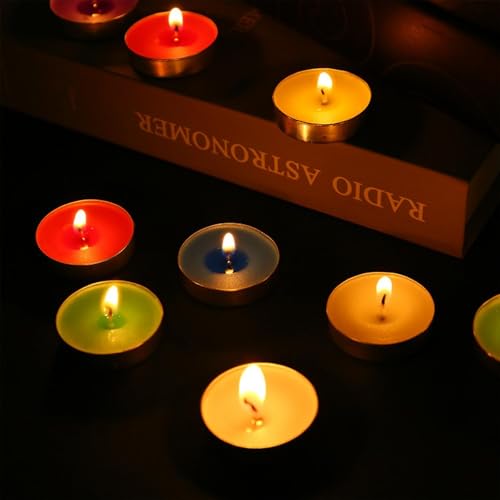 - 🎁【مدة احتراق طويلة】شموع الشاي لدينا تضمن احتراقًا طويل الأمد يصل من ساعة ونصف إلى ساعتان متواصلة، فهي ليست فقط جميلة وفعالة، بل اقتصادية أيضًا.