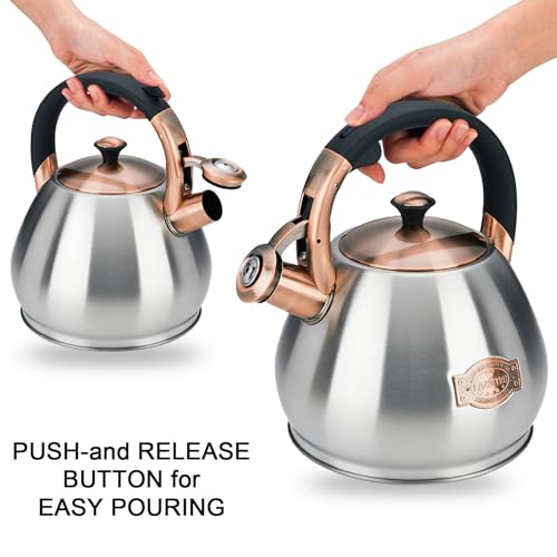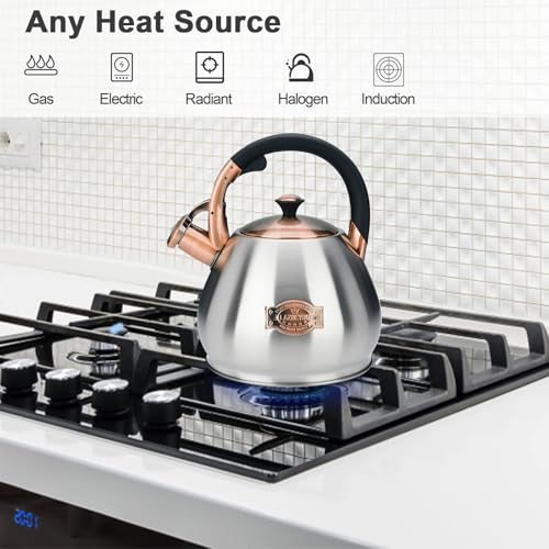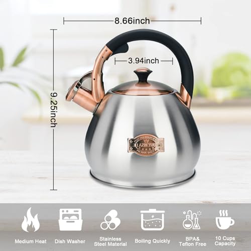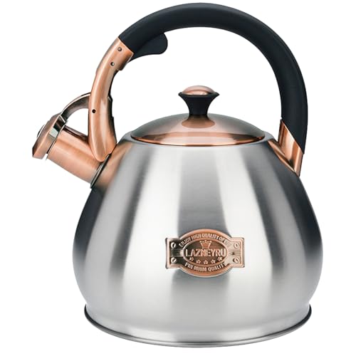Lazneyru - إبريق لغلي الشاي بصفارة سعة 2.8 لتر، إبريق شاي من الستانلس ستيل لسطح الموقد مع يد مريحة مقاومة للحرارة