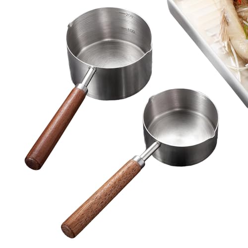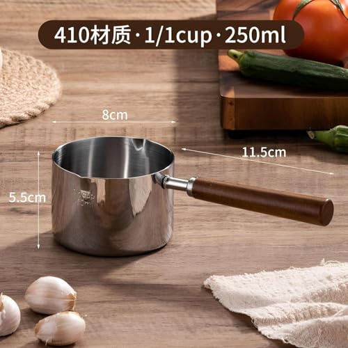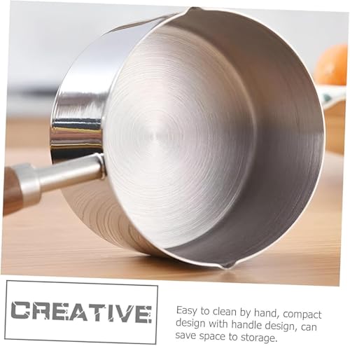 - تتميز الأدوات المصغرة بإبريق رغوة الحليب ووعاء إذابة الزبدة، مصمم خصيصًا للاستخدام على الموقد. يضمن الوعاء على شكل جرس تسخينًا سريعًا ومتساويًا، بينما يجعل حجمه الصغير من السهل التعامل معه، مما يوفر فوهتين للصب لمزيد من الراحة في الصب.