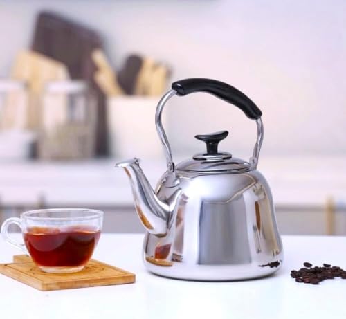Happy Home - غلاية شاي من الفولاذ المقاوم للصدأ مزودة بمقبض مقاوم للحرارة (2 لتر)