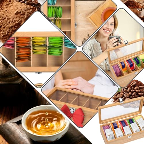 - جودة وتصميم فاخرين - مصنوع يدويًا مع الاهتمام بالتفاصيل، يتميز صندوق تخزين الشاي الخاص بنا بتصميم مشبك في الأمام، مما يضمن إغلاقًا آمنًا مع توفير سهولة الوصول إلى مجموعة الشاي الخاصة بك. مصنوع من زجاج شفاف، يسمح لك برؤية محتويات الصندوق دون عناء دون فتحه.