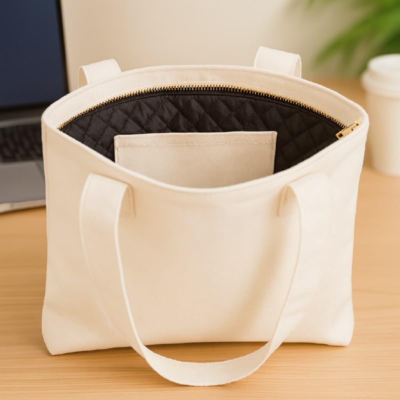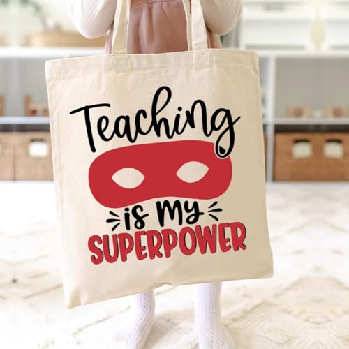 Generic - شنطة كبيرة توت قماشية بتصميم مطبوع من تيتشر - 40 × 40 سم، بيج فاتح، بطانة داخلية مبطنة، جيب داخلي، اغلاق بسحاب، قماش قطني