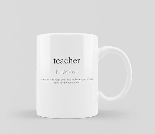 Generic - مج قهوة مطبوع من تيتشر - 0907، بورسلين، أبيض