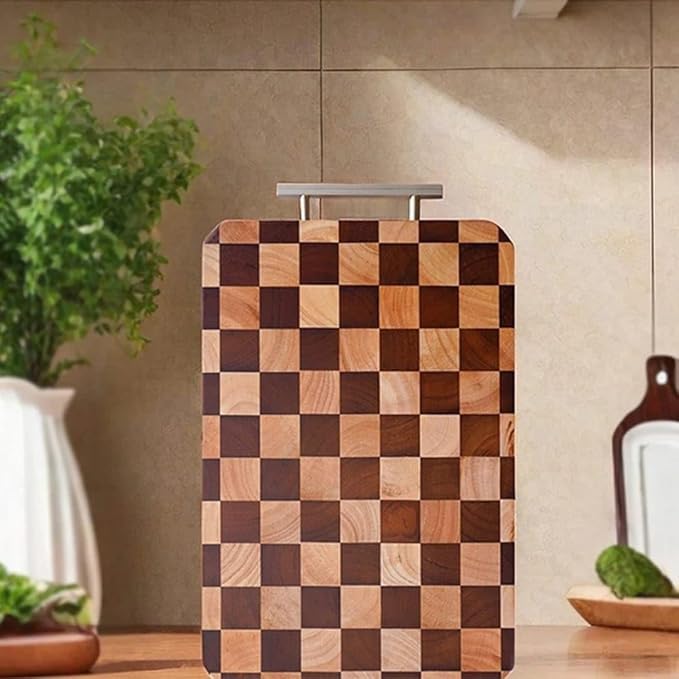 Generic - لوح تقطيع من خشب الساج للمطبخ، لوح تقطيع خشبي كبير بمقابض غير مرئية، للحوم والخضروات والفواكه والخبز والجبن، 24 × 37 سم