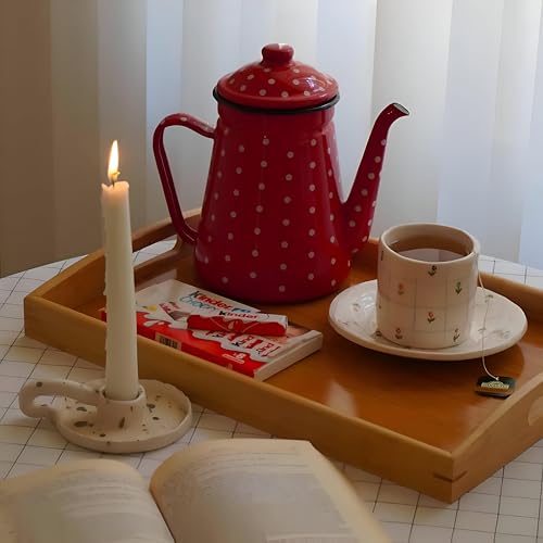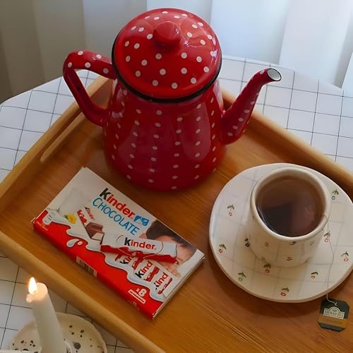 Generic - مجموعة غلاية شاي - غلاية مياه أنيقة مطلية بالمينا تتميز بسطح أملس ومقبض متين والاحتفاظ بالحرارة وسحر زخرفي مناسبة للمطابخ المنزلية أو خدمة الشاي في المكتب مع جاذبية لا تتأثر بمرور الزمن