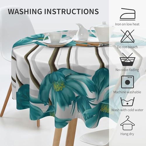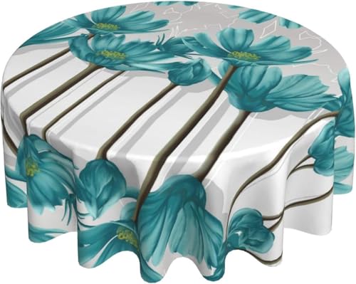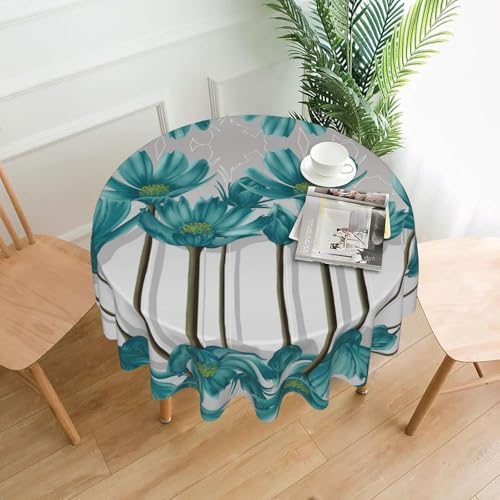 LC - مفرش طاولة دائري بتصميم زهور، مقاوم للزيوت ومضاد للانسكاب والماء والتجاعيد، مفرش طاولة من المايكروفايبر للحفلات والمطبخ والبوفيه، لون أبيض ورمادي وأزرق مخضر (قطر 1.52 متر).