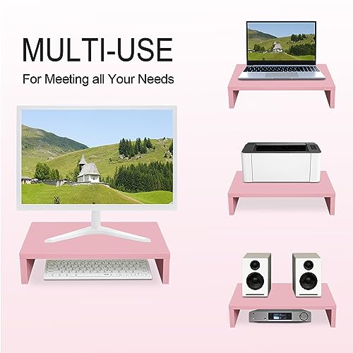 TEAMIX - حامل شاشة مقاس 14.2 بوصة، حامل شاشة خشبي مع مساحة تخزين للمكتب، حامل شاشة صغير للتلفزيون/ الشاشة/ الكمبيوتر/ اللاب توب، حامل كمبيوتر مكتبي من تيميكس، وردي