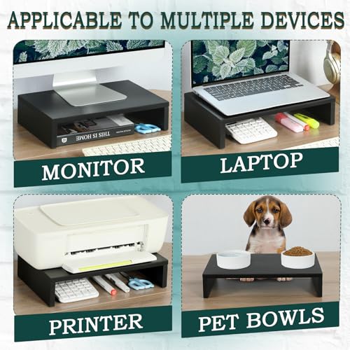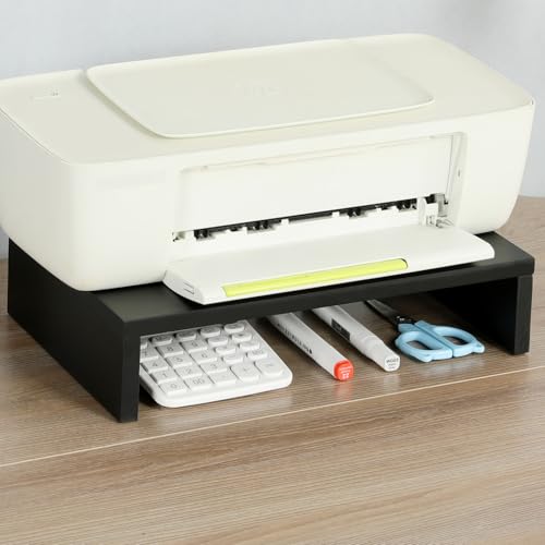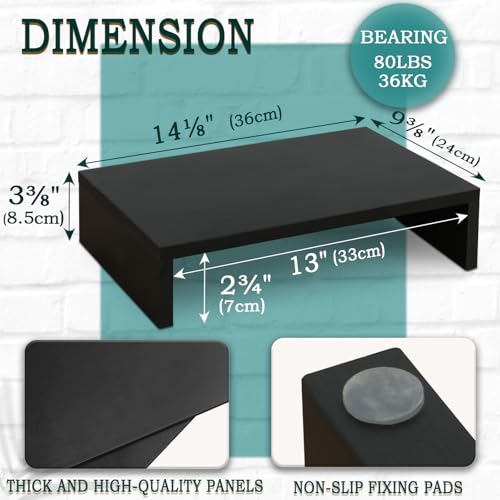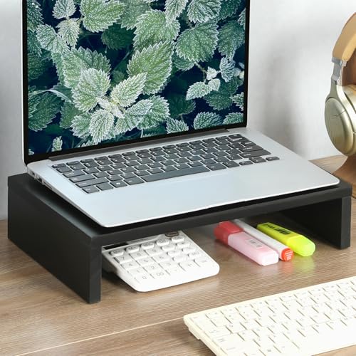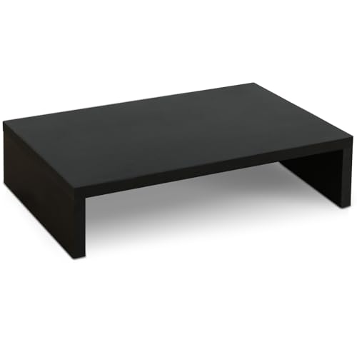 TEAMIX - حامل شاشة خشب صلب مقاس 14.2 بوصة كالشاشة العادية واللاب توب والكمبيوتر ومناسب للاستخدام كرف منظم للمكتب والمطبخ والمنزل بنمط ريفي بني وعصري من تيمكس، لون أسود