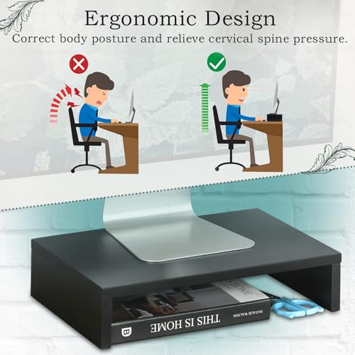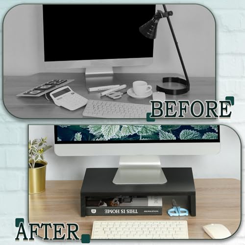 - 【تصميم مريح】يأتي رف المكتب بارتفاع محسوب بعناية لتخفيف الضغط الواقع على عينيك ورقبتك وظهرك وضمان الراحة والاسترخاء التام.
