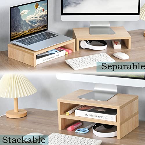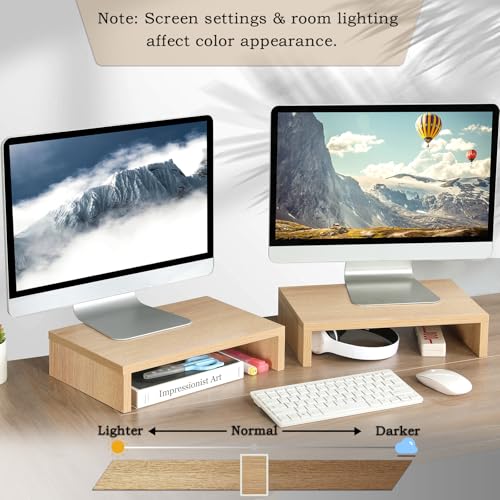 TEAMIX - حامل شاشة خشبي من تيمكس - عبوة من 2 حامل شاشة مزدوج قابل للتعديل للاب توب/الكمبيوتر