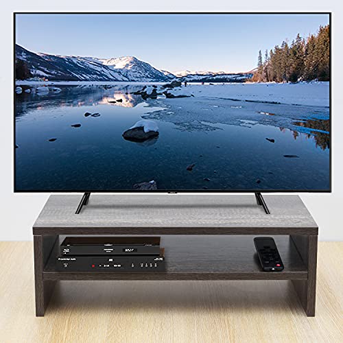 TEAMIX - تيمكس حامل شاشة خشبي - حامل لاب توب رمادي من طبقتين للمكتب، رافع شاشة للتلفزيون / الطابعة/الكيبورد، حامل كمبيوتر مع مساحة تخزين لتنظيم رف المكتب المنزلي