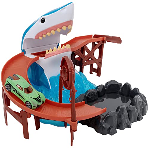 Teamsterz - لعبة مسار سيارة متغيرة الألوان بتصميم سمكة قرش تكشر عن أنيابها من تيم ستيرز|مجموعة ألعاب مسار السيارة|ألعاب سيارات مثالية للمياه ووقت الاستحمام|مجسمات ومركبات لعب للأطفال|للأطفال بعمر 3 سنوات فأكثر