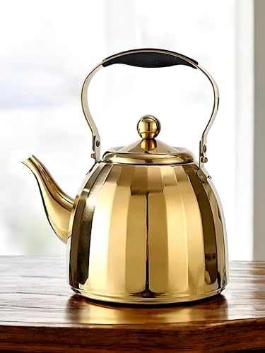 - بلمسة نهائية بلون ذهبي أنيق مع هيكل من الستانلس ستيل، يجمع إبريق الشاي هذا بين المظهر الجمالي والعملي، ويتميز بالتسخين السريع والاحتفاظ الممتاز بالحرارة والتوافق مع تسخين الموقد للاستخدام متعدد الاستخدامات.