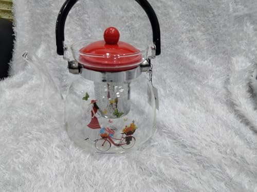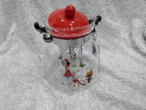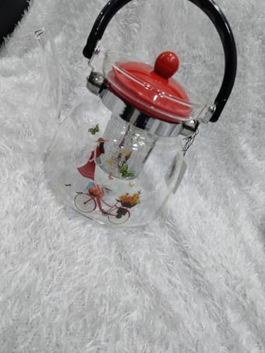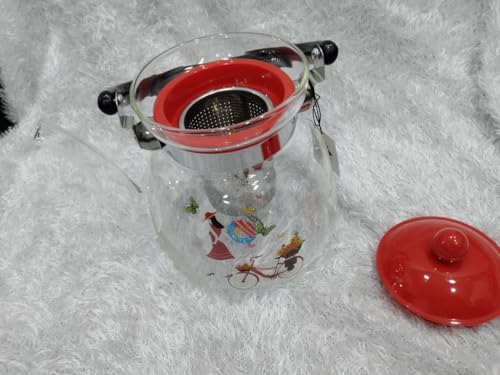 Generic - إبريق شاي بمصفاة، سعة 1000مل، شفاف بغطاء أحمر