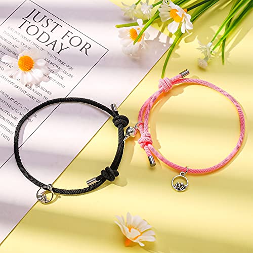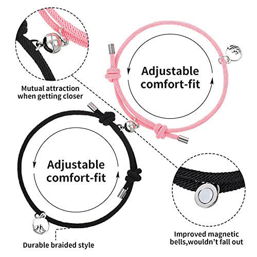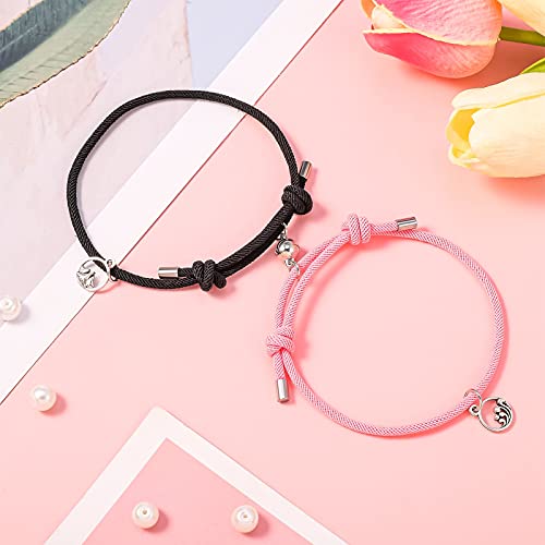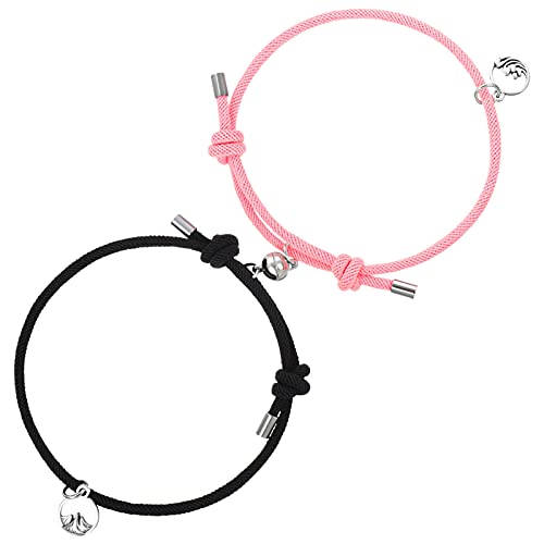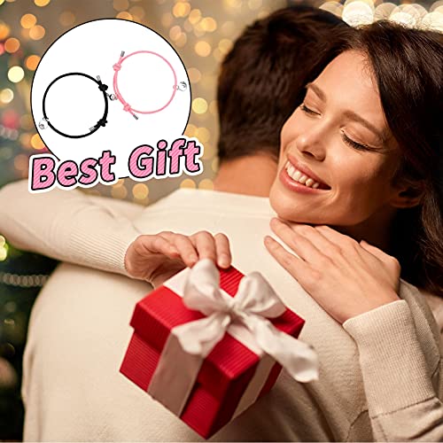 Teblacker - مجموعة أساور مغناطيسية للأزواج من تيبلاكر مكونة قطعتين للجذب المتبادل، سوار حبل مضفر، هدايا للزوجين للرجال والنساء، قابلة للتعديل (اسود وبينك)