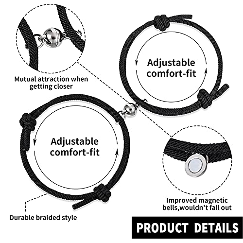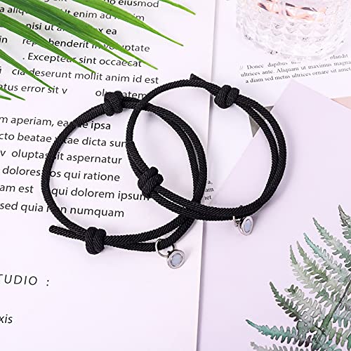 Generic - مجموعة أساور مغناطيسية للأزواج من تيبلاكر مكونة قطعتين للجذب المتبادل، سوار حبل مضفر، هدايا للزوجين للرجال والنساء، قابلة للتعديل (اسود وابيض)