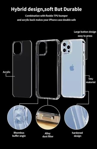Generic - جراب حماية خلفي ايفو شفاف من البولي يوريثين المقاوم للحرارة لموبايل ابل ايفون 13 - 14 6.1 بوصة مع فلتر صوت معدني مضاد للصدمات تيك 21