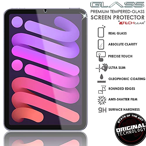 TECHGEAR - شاشة حماية من تيكجير،[2 عبوة اي باد ميني 6، الجيل السادس الزجاج، واقي الصلب [صلابة 9H] [وضوح HD] [مقاوم للخدش] [غير فقاعي] لجهاز 8، 3 بوصة، 2021، شفاف
