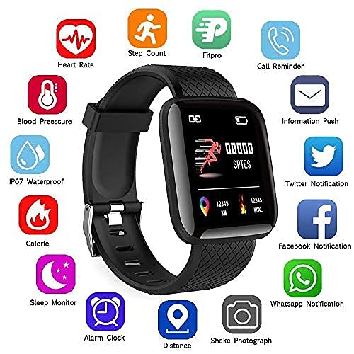 TechKing - ساعة ذكية بشاشة تعمل باللمس من تيك كينج بلوتوث بمستشعر معدل نبضات القلب وقياس الوظائف الأساسية للجسم لجميع الأولاد والبنات موديل DZ-116 متعدد الألوان