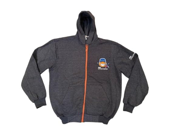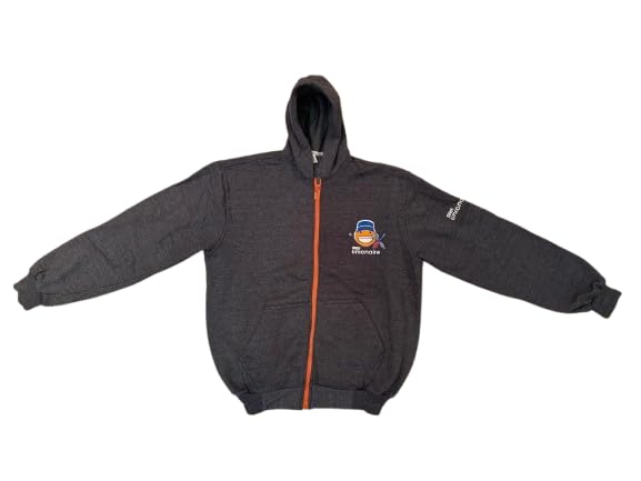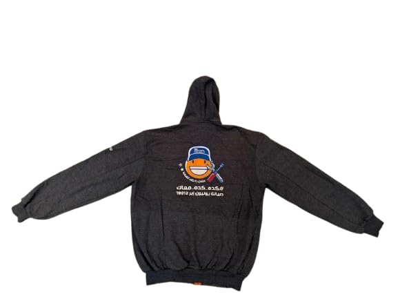 Generic - كابشون للفنيين، رمادي داكن مع سوسته برتقالي، هودي بغطاء للرأس مقاس كبير (L) للشتاء