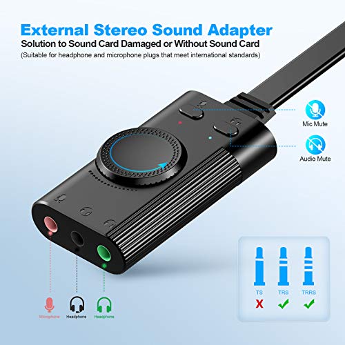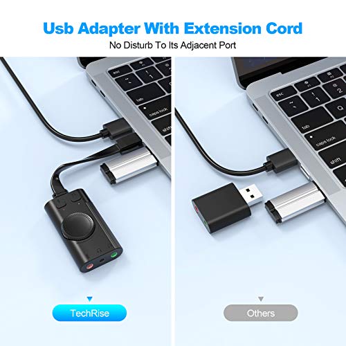 TechRise - بطاقة صوت USB، محول صوت ستيريو خارجي تيك رايز USB مع تحكم في مستوى الصوت لنظام التشغيل ويندوز وماك، بخاصية التوصيل والتشغيل، لا حاجة لمشغلات