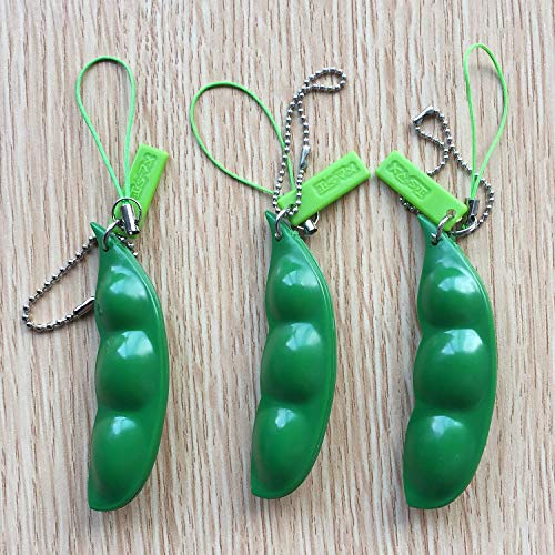 TECHVIDA - مجموعة ألعاب فيدجيت من 3 قطع من تيكفيدا ، سكويز إيه بين فول الصويا وتخفيف التوتر ، سحر مرعب ، سلسلة مفاتيح Edamame Pea للهواتف المحمولة والمفاتيح - أخضر