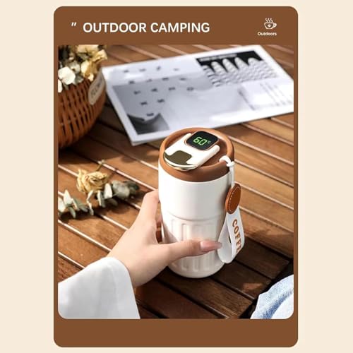 TECHZONE - زجاجة سفر من فولاذ مقاوم للصدأ بشاشة رقمية لعرض درجة الحرارة من تيكزون - كوب معزول بتفريغ الهواء 420 مل مانع للتسرب مع شاشة رقمية وتصميم متين (الوان متنوعة)