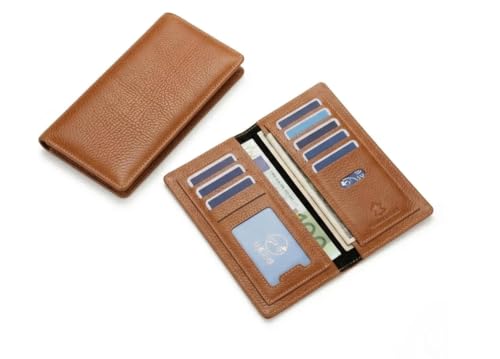 TECHZONE - محفظة طويلة رجالية من جلد البقر - حامل كروت أنيق من الجلد ومنظم نقود بتصميم رفيع للاستخدام اليومي والهدايا (بني) من تيكزون