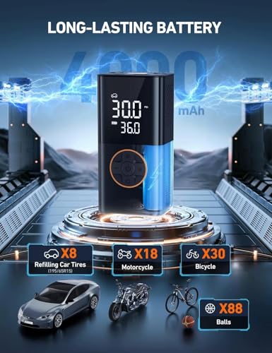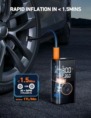 - 💨 نفخ سريع يصل إلى 150 رطل لكل بوصة مربعة - تدفق هواء عالي السرعة 17 لتر/ دقيقة لنفخ الإطارات بسرعة عند الخروج أو القيام بأنشطة خارجية.