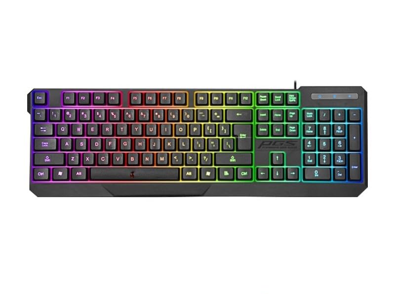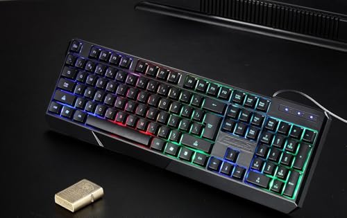 TECHZONE - لوحة المفاتيح ألعاب سلكية بمنفذ USB بألوان ار جي بي- لوحة مفاتيح ميكانيكية بإضاءة خلفية ملونة مع إضاءة ليد ومفاتيح متينة من تيكزون