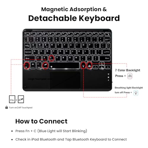 TECPHILE - حافظة كيبورد LX2115T لجهاز لينوفو تاب P11 الجيل الثاني 11.5 انش 2023 TB350FU مع ولوحة لمس واضاءة خلفية بـ7 الوان وزوايا متعددة وكيبورد لاسلكي قابل للفصل