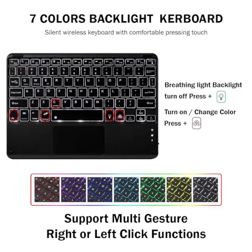 - لوحة مفاتيح بإضاءة خلفية من 7 ألوان: مثالية لبيئات الإضاءة المنخفضة: يوفر جراب لينوفو تاب ميزة إضاءة خلفية جذابة من 7 ألوان يمكن تخصيصها لتناسب تفضيلات الإضاءة الخاصة بك. اضبط إعدادات السطوع بسهولة واختر من بين مجموعة من 7 ألوان نابضة بالحياة للإضاءة الخلفية، مما يوفر تجربة كتابة ممتعة حتى في البيئات ذات الإضاءة الخافتة.