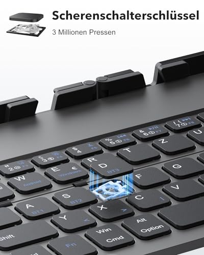 - 【توافق متعدد الأنظمة】لوحة المفاتيح القابلة للطي متوافقة على نطاق واسع مع أنظمة آي او اس وأندرويد وويندوز، وهي مناسبة لأجهزة ايباد وآيفون وسامسونج وأجهزة اللاب توب وأجهزة كمبيوتر مكتبية والمزيد من الأجهزة.