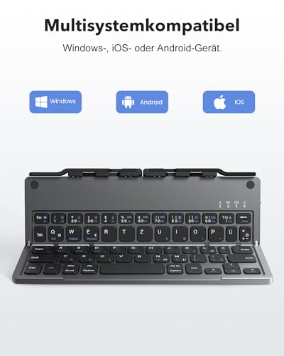 TECURS - لوحة مفاتيح بلوتوث قابلة للطي مع حامل قابلة لإعادة الشحن بتصميم فائق النحافة ومحمولة لاسلكية ميني لأجهزة ايباد والتابلت والموبايل الذكية وأنظمة اي او اس وأندرويد وويندوز من تيكورس