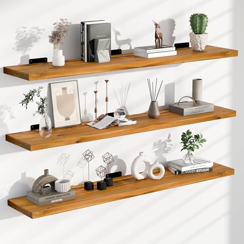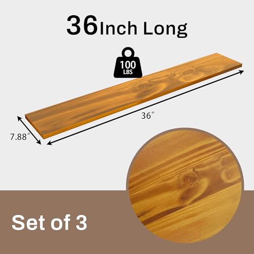 TEDIDUWA - مجموعة ارفف عائمة من الخشب الريفي مكونة من 3 قطع، رفوف حائط خشبية ريفية مقاس 36 انش، ارفف معلقة سهلة التركيب لغرفة المعيشة والمطبخ والحمام، سعة 100 باوند (بني، 3T36IN)