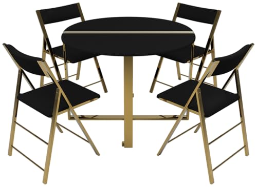 - هيكل متين: إطار قوي من الستانلس ستيل مع لمسة نهائية ذهبية اللون يدعم الطاولة والكراسي من أجل ثبات دائم.