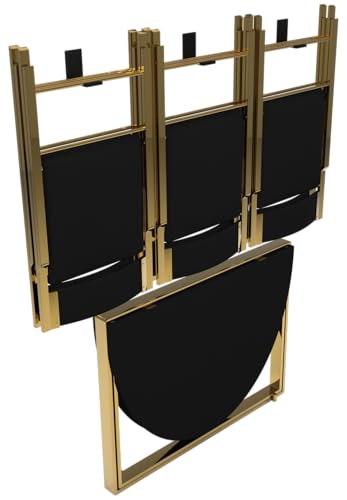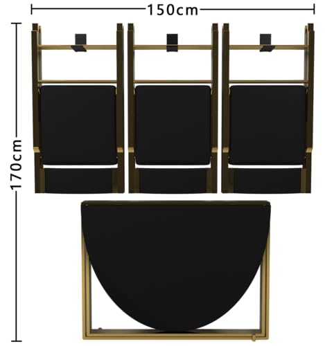 - مواد عملية: هيكل معدني متين مع سطح طاولة أسود ومقاعد كرسي تكملها إطارات ذهبية فاخرة. تتميز الكراسي بمقاعد مريحة مع آلية طي قوية.