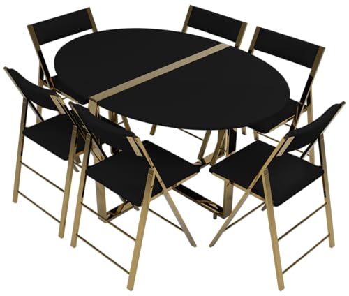 - موفر للمساحة: تتضمن مجموعة الطعام الكاملة القابلة للطي المكونة من 7 قطع طاولة مستديرة وستة كراسي يمكن تخزينها بسهولة عند عدم الاستخدام.