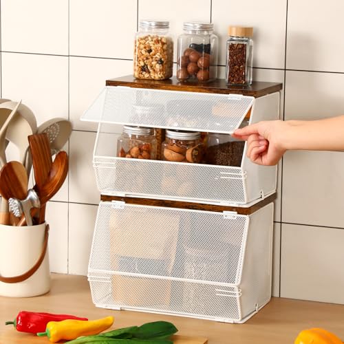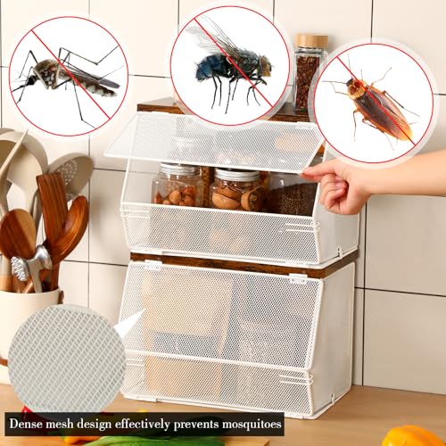 - تصميم متعدد الاستخدامات وموفر للمساحة: سلة التخزين المثبتة على الحائط ليست عملية فقط ولكنها موفرة للمساحة؛ يكمل تصميمها الشبكي المعدني الأبيض الجميل عمليتها، مما يسمح بوضعها عموديًا على سطح العمل وحتى تثبيتها على الحائط؛ بالإضافة إلى ذلك، يساعد تصميمها القابل للطي والغطاء القوي على توفير أكبر مساحة في مطبخك، مما يوفر مساحة تخزين عملية دون التضحية بالأناقة