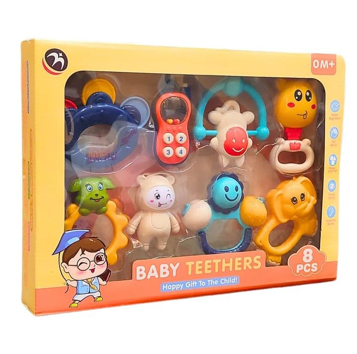 LC - مجموعة العاب عضاضة وخشخيشة باصوات ناعمة للاطفال - 8 قطع