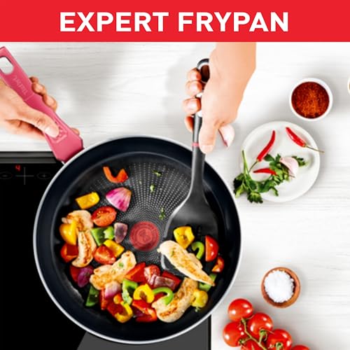 Tefa - مقلاة بمقبض مريح، بطبقة غير لاصقة من التيتانيوم 2X مزودة بتقنية ثيرمو سيجنال وقاعدة متقدمة للتسخين على الحث الكهربائي تيفال اكسبرت، لون أحمر طراز C2891103