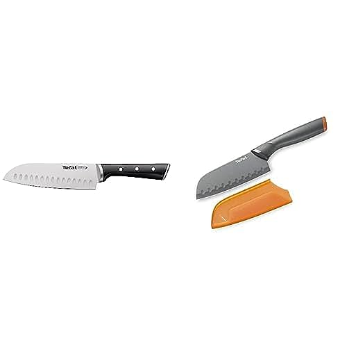 T-Fal - سكينة شيف ايس فورس من تيفال 18 سم من الستانلس ستيل - k2320614 + سكينة تقطيع سانتوكو بغطاء 12 سم، رمادي/برتقالي - k1220104 من تيفال