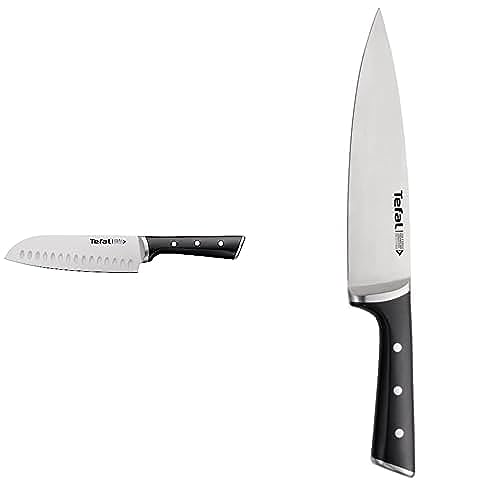T-Fal - سكينة سانتوكو بتقنية قوة الجليد من ستانلس ستيل 18 سم (k2320614) + سكينة شيف بتقنية قوة الجليد من ستانلس ستيل 20 سم (k2320214) من تيفال