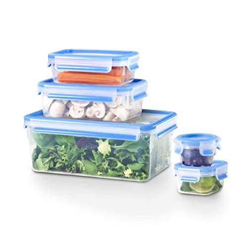 T-Fal - طقم علب ماسترسيل لحفظ الطعام طازج مستطيلة الشكل مكونة من 5 قطع من تيفال، لون ازرق/شفاف - K3029012