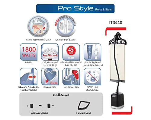 T-Fal - مكواة بخار للملابس عمودية بقدرة 1800 وات برو ستايل من تيفال، مزودة بستارة، لون أسود، موديل IT3440EG