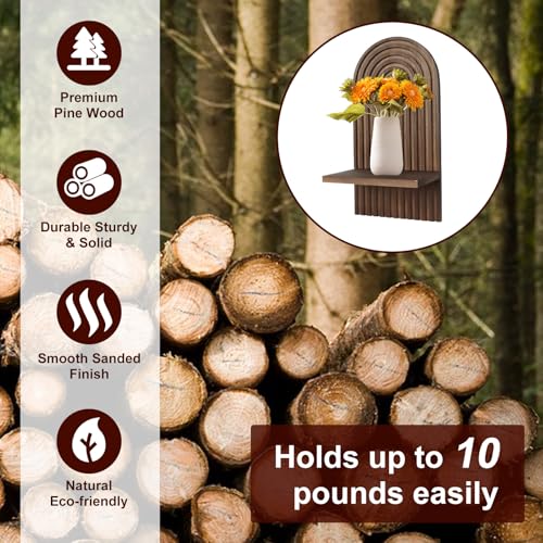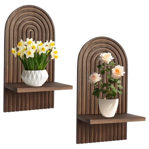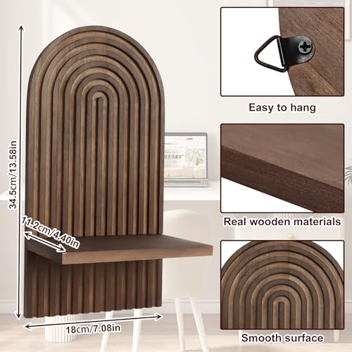Tefola - رف حائط خشبي من تيفولا، رف عائم يثبت على الحائط بنمط بوهيمي قوس قزح، رفوف عرض لغرفة النوم وغرفة المعيشة وديكور المنزل (بني)